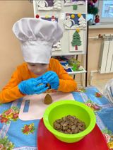 Младшие воспитанники ГБСУСО МО "Семейный центр имени А.И. Мещерякова" приготовили для своих друзей вкусное зимнее печенье "Шишки". В практической деятельности ребята закрепили название продуктов питания и посуды, продолжили развивать навыки мелкой моторики и использования предметов кухонной утвари, обогатили свой чувственный опыт. Печенье удалось на славу!