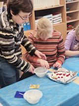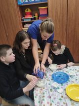 В ГБСУСО МО "Семейный центр имени А.И. Мещерякова" состоялась очередная встреча воспитанников с волонтёрами школы 201 (Москва). На встрече ребята готовились к предстоящему празднику 23 февраля: делали праздничные открытки, готовили поздравления, приготовили вкусные угощения.