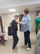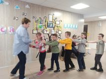 В рамках модуля "Музыкальная гостиная" по программе внеурочной деятельности в ГБСУСО МО "Семейный центр имени А.И.Мещерякова" проходят занятия, на которых воспитанники учатся различать на слух неречевые звуки, музыкальные ритмы, воспроизводить танцевальные движения по подражанию. Это направление воспитательной работы способствует коррекции нестабильного эмоционального фона в поведении детей.