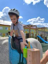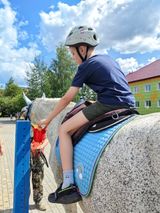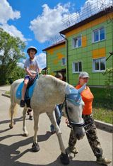 Иппотерапия в ГБСУСО МО "Семейный центр имени А.И.Мещерякова " продолжается и во время летних каникул. Игра - квест по адаптивной верховой езде "Строим домик для лошади". Дети верхом на лошади проходили этапы, собирали детали конструктора, из которых затем построили домик для лошади. Иппотерапия дает мощный импульс для развития. Сам процесс общения с большим, сильным и добрым животным приносит массу положительных эмоций, даёт уверенность. После тренировок дети ощущают эмоциональный подъем. В связке с хорошей физической нагрузкой это способствует хорошему развитию.