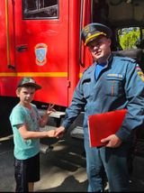 В гостях у воспитанников «Семейного центра имени АИ Мещерякова» побывал пожарный расчет МЧС. Ребята познакомились с настоящими пожарными, узнали, как выглядит специальная форма пожарных, защищающая их во время тушения огня и примерили ее на себя, осмотрели пожарную машину и даже сумели посидеть в ее кабине. Полученные представления воспитанники закрепили в своих рисунках и написанных ими текстах.