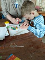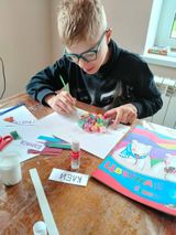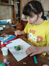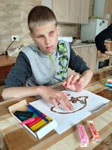 28 июня была плохая погода, шел дождь, воспитанники лепили и делали барельеф на тему "Ёжик". Максим делал аппликацию животного из цветной бумаги. Дети называли части тела ежа, иголки наклеивали из бумаги, поделки получились разные и интересные.