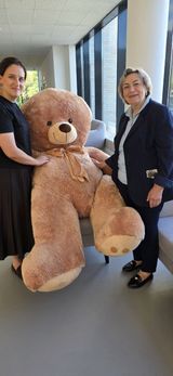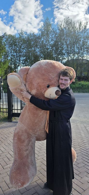 Нам отдали такую большую плюшевую радость, совершенно нового, с этикеткой. И мы решили передать его в место, где его будут особенно сильно любить..