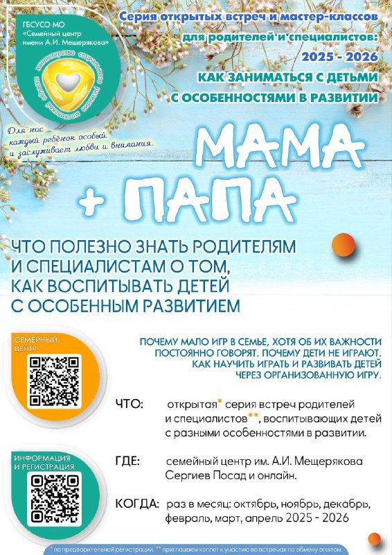 Приглашаем вас принять участие в встречах для родителей и специалистов "Как заниматься с детьми с особенностями в развитии".