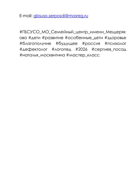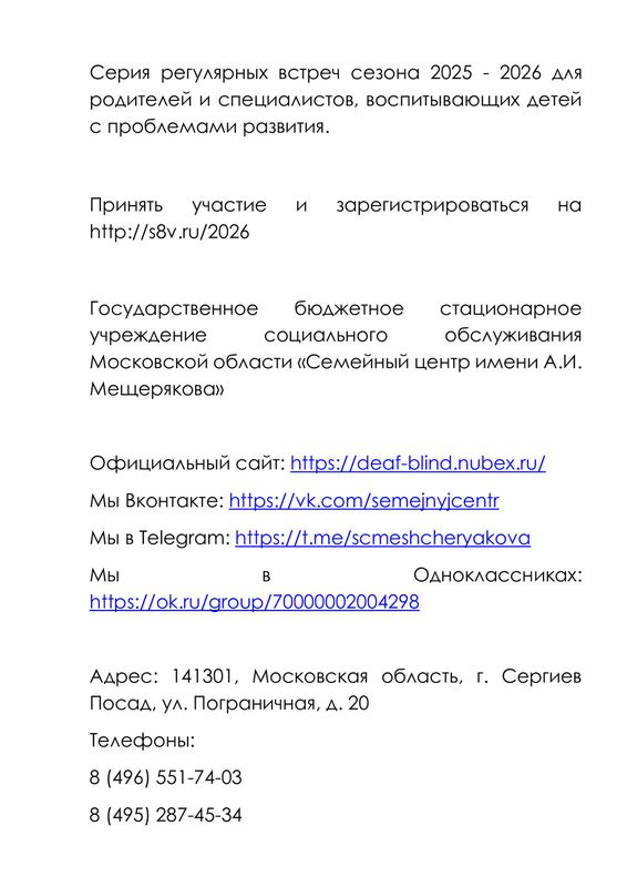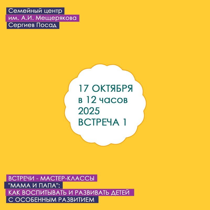 Серия регулярных встреч сезона 2025 - 2026 для родителей и специалистов, воспитывающих детей с проблемами развития.