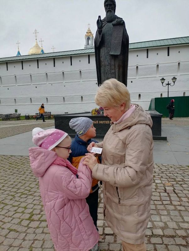 В дни празднования памяти прп. Сергия Радонежского, воспитанники Семейного центра совершили паломническую поездку в Свято - Троице Сергиеву Лавру. Для участия в экскурсии были приглашены родители. Ребята познакомились с тактильной схемой Лавры, памятником Преподобному Сергию Радонежскому. Следую в монастырь, обследовали толщину стен, учились ориентироваться на звук в открытом пространстве, слушали колокольный звон, познакомились с батюшкой, отцом Аркадием и получили благословение. Ребята поклонились мощам Преподобного Сергия Радонежского и пили святую воду с источника.