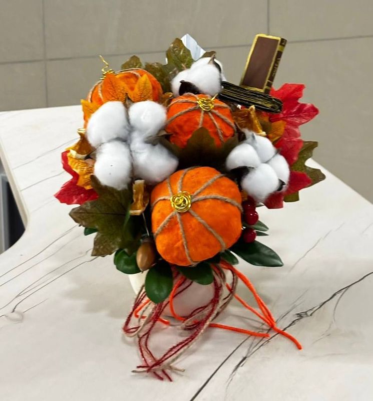 Теперь эта тёплая и уютная работа украшает холл нашего учреждения, создавая атмосферу уюта и осеннего настроения для всех гостей и сотрудников