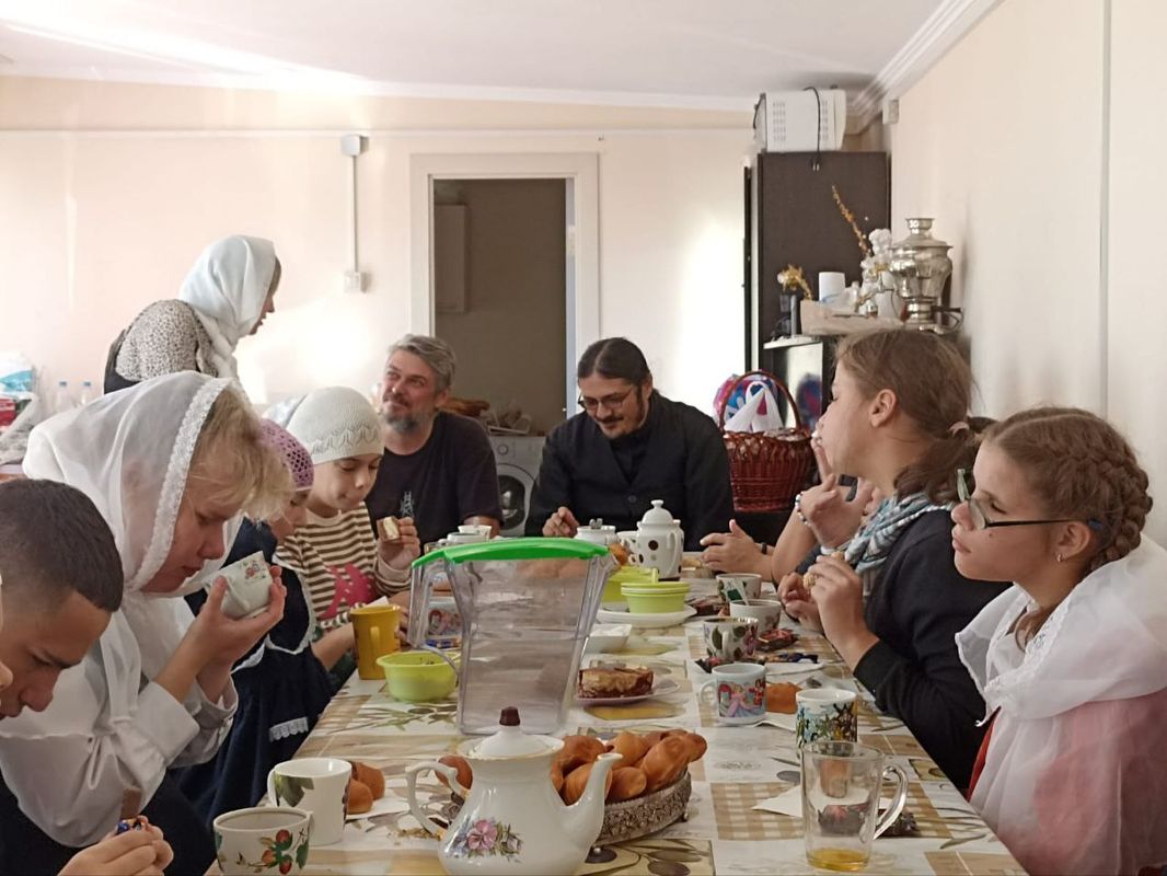 С настоятелем Храма отцом Михаилом ребят связывает давняя дружба. После совместных молитв ребята могли пообщаться с Батюшкой и прихожанами, совершить совместную трапезу.