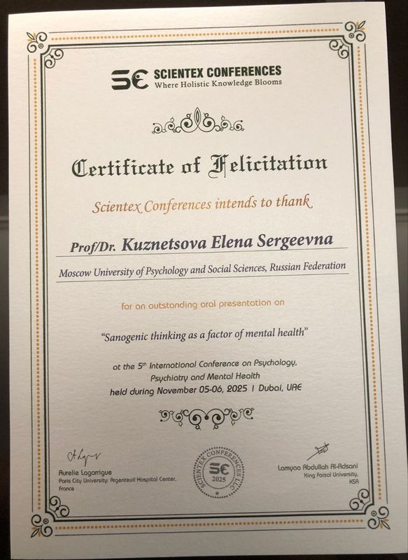 Педагог-психолог Центра - Кузнецова Елена приняла активное участие в конференции, выступила с докладом, опубликовала статью и поделилась своим опытом с коллегами.