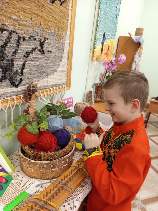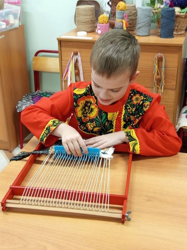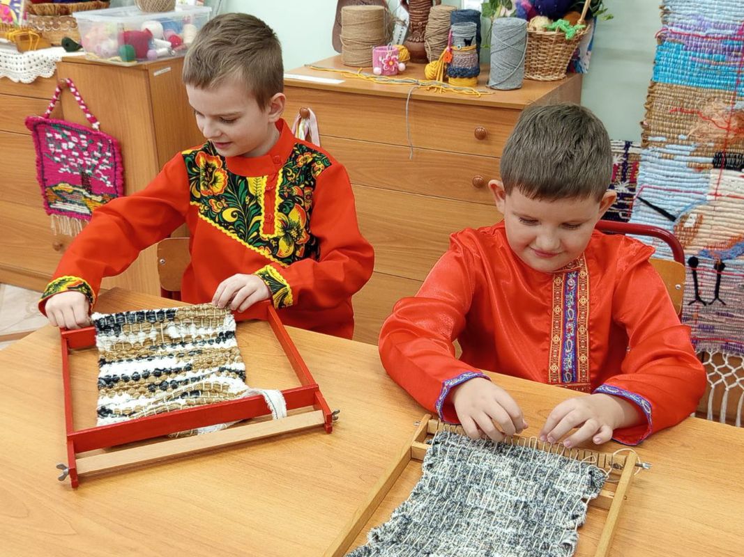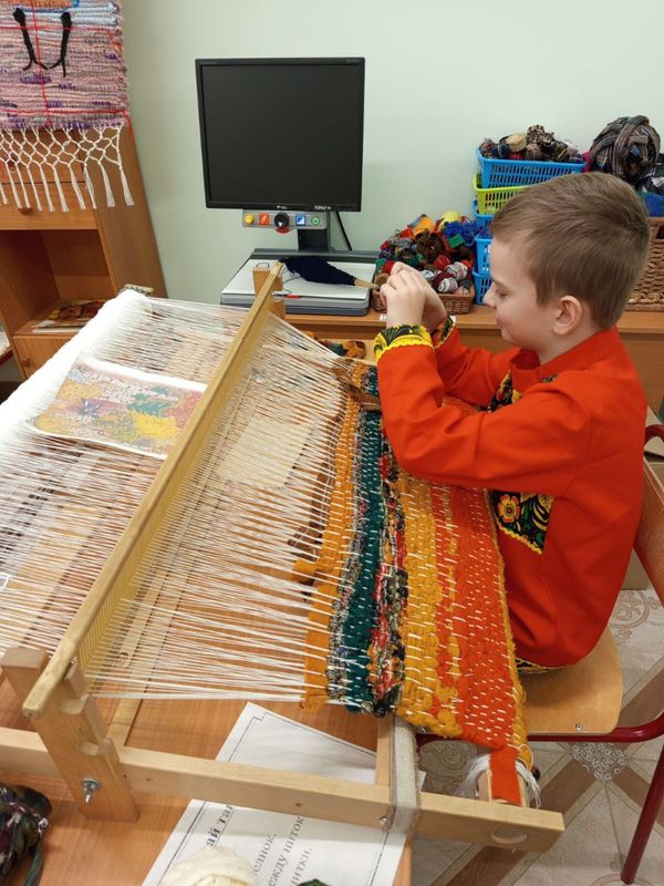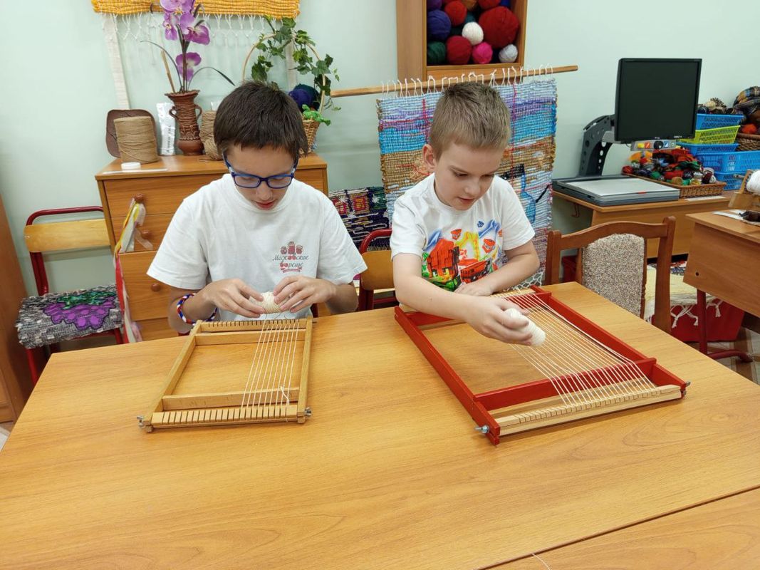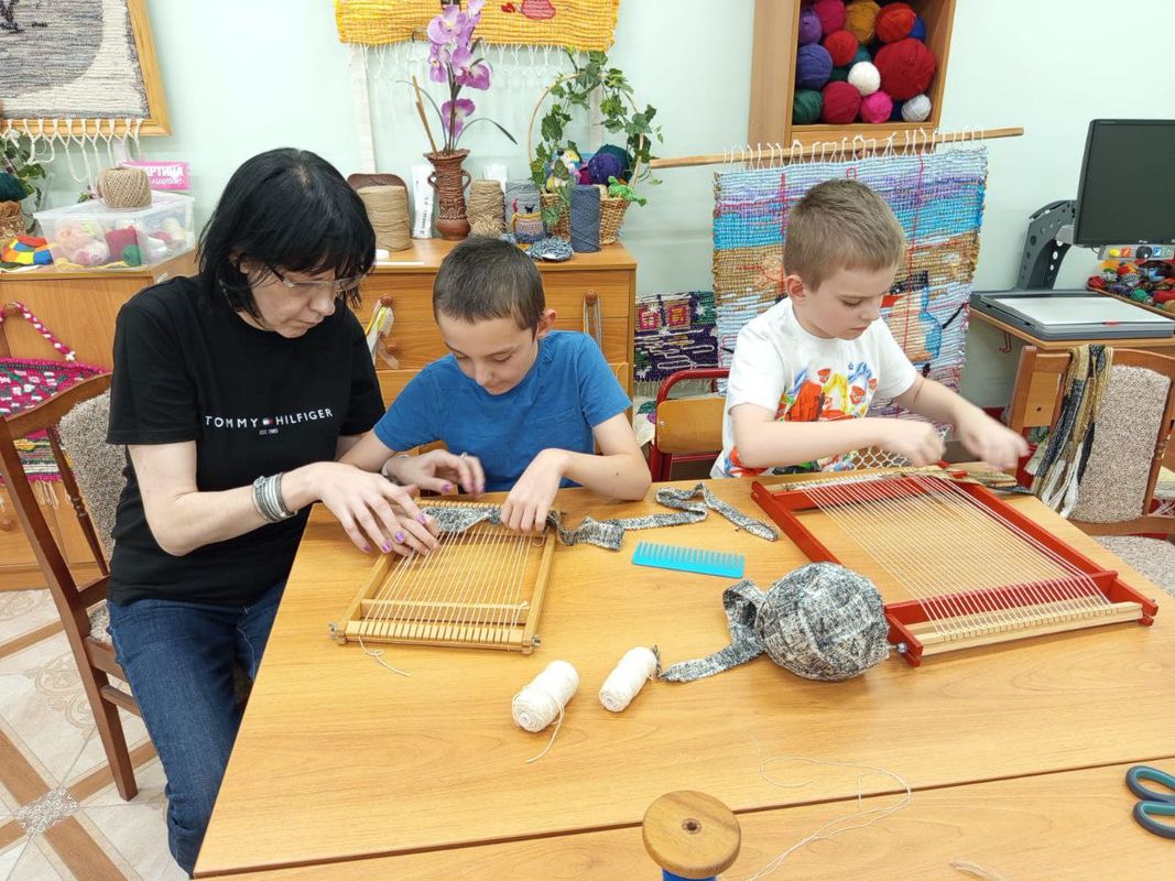 В ткацкой мастерской воспитанники попробовали свои силы на разных приспособлениях и станках.
