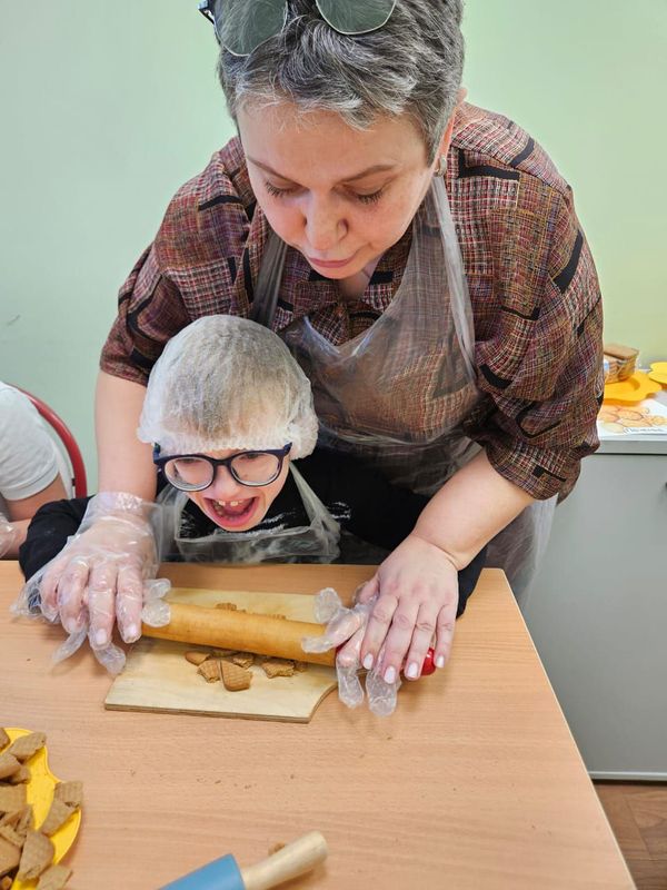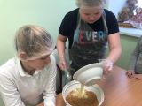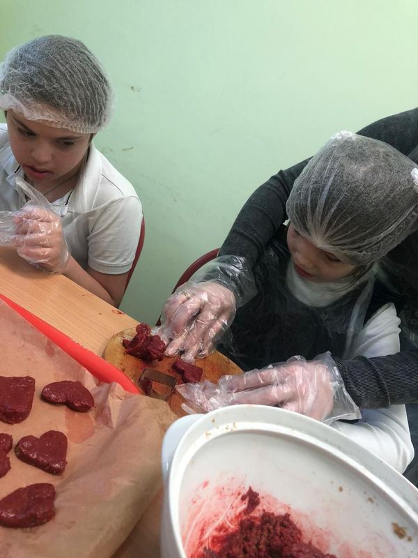 Первый этап: Кулинарный. В кабинете домоводства царила волшебная атмосфера. Ребята, опираясь на алгоритм, с помощью педагогов готовили печенье «Сердечко для мамы». Они с таким усердием разминали, раскатывали тесто и вырезали формочки! И у них получилось нежное и красивое угощение — точь-в-точь как ваши любящие сердца.