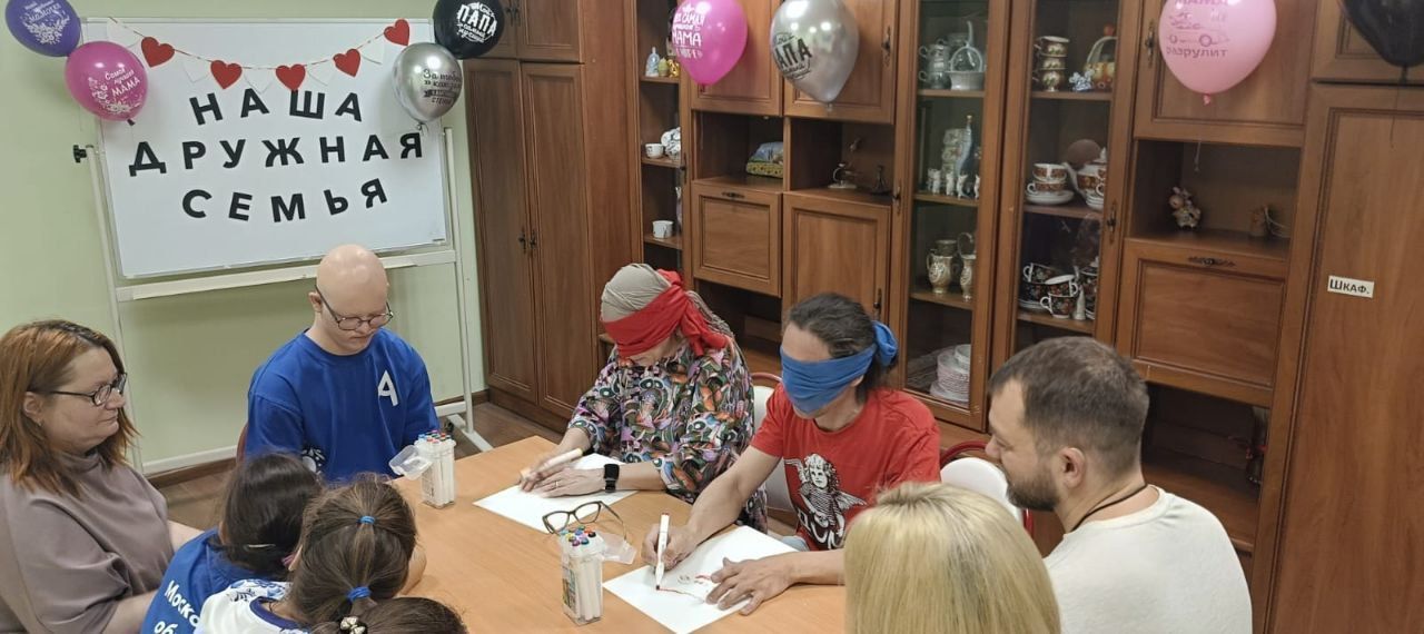В Семейном центре имени А.И. Мещерякова 30 ноября традиционно отмечается День матери. Воспитанники совместили День матери с Днём отца, чтобы собрать большую и дружную семью. Мамам и папам они приготовили заранее подарки - открытки. На мероприятии все: и дети и родители участвовали в спортивных играх и весёлых эстафетах. Особенно всем понравилась игра "Испорченный телефон", ведь нужно было передать первоначальную фразу на жестовом языке, не меняя её. Затем родители рисовали портреты своих детей с завязанными глазами. Эти рисунки вызвали смех не только у воспитанников, но и у самих родителей. В заключении все собрались за одним большим столом, как принято в большой и дружной семье. Воспитанники сами расставляли угощения, наливали родителям чай. За чаепитием родители и воспитанники душевно общались и были внимательны друг к другу.