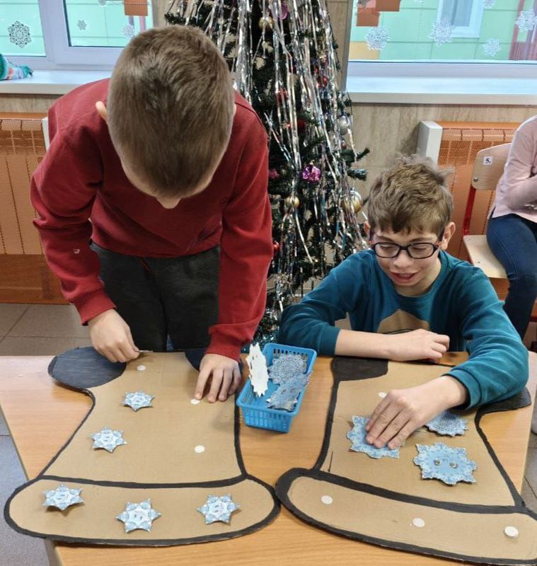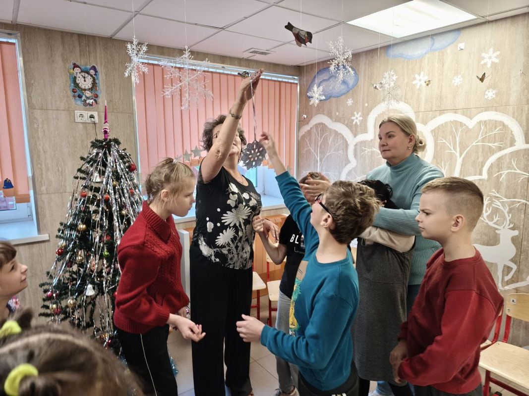 А какая красота получилась, когда все вместе начали украшать нашу ёлку! Каждая снежинка, сделанная своими руками из разных материалов, — уникальна и прекрасна!