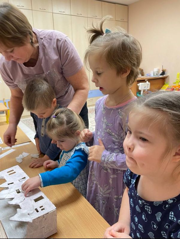 Итогом коллективной деятельности воспитанников дошкольной группы стал зимний домик. В совместной творческой работе ребята учатся взаимодействовать друг с другом, что способствует развитию коммуникативных навыков и общению, развиваются мелкая моторика и согласованные действия рук, совершенствуются навыки ручного труда.