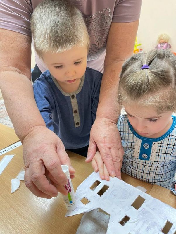 Дети получили удовольствие от процесса создания общей поделки и с интересом наблюдали за результатом своей деятельности. Домик получился новогодним!