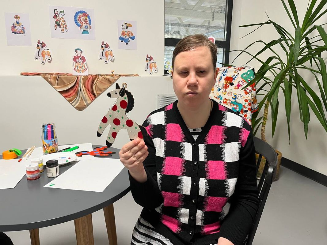 Особое внимание уделили языку Дымковских узоров: как точки-«горошины», волнистые линии и клетки, складываются в солнечный, праздничный орнамент.