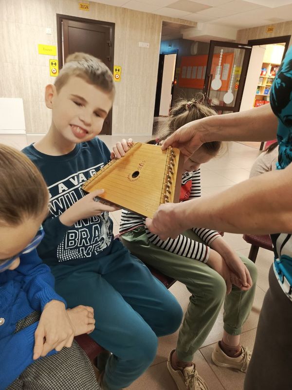 Ребята не просто узнали названия таких разных инструментов, как звончатые гусли, задорное банджо, душевная гитара, певучая скрипка и мощный контрабас. У них была уникальная возможность подержать их в руках, почувствовать их фактуру, и даже извлечь свои первые звуки!