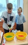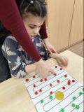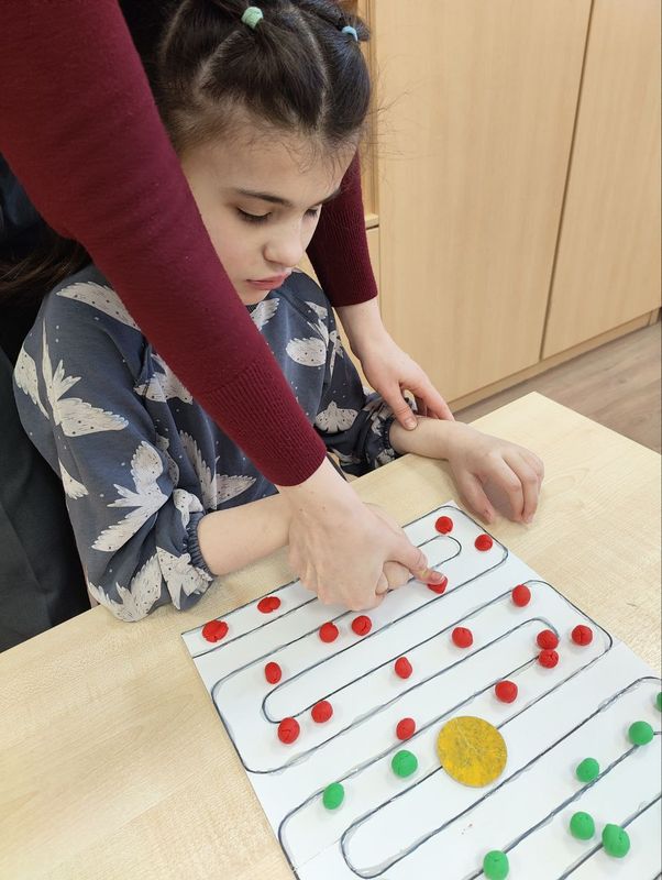 Зима - это время года, где случаются чудеса и волшебство не только под Новый год и рождество. Это время забав и творческих фантазий для игр на улице, а если очень сильный мороз, то и в классе. На уроке по предметно - практической деятельности дети стали юными изобретателями - опыт с водой, шариками и красками было делать вместе очень интересно. А трескучий мороз сделал свое дело. В итоге вода в шарике замёрзла. Получилась отличная идея для украшения" Зимнего лабиринта" на улице. Игра "Цветной лабиринт" также подходит для применения на уроках по математике, сенсорному и двигательному развитию, где продолжают формироваться зрительное восприятие, мелкая и крупная моторика, счёт. А с нейро - шаблонами такие игры становятся более увлекательными.