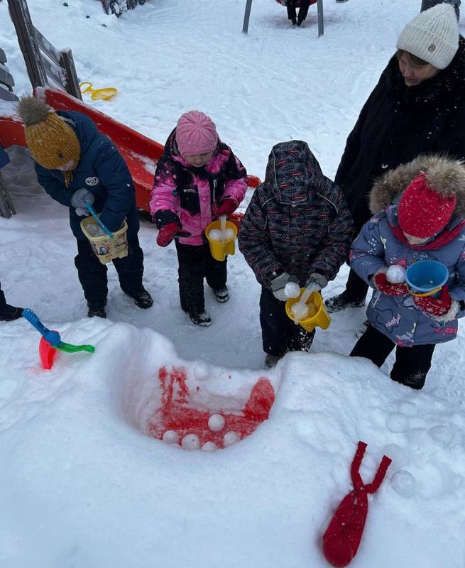 Зима - прекрасное время года. Это время веселья, игр и забав! Зимним днём ребята лепили снежки, а потом играли с ними, соревнуясь в ловкости и меткости. Дружным «паровозиком» ходили по снежному лабиринту, пролезали через снежную «пещеру», катались на ледянках и санках с горки. А еще - все вместе играли в подвижные игры! Всем было весело и интересно!