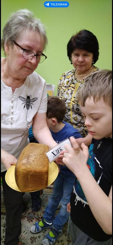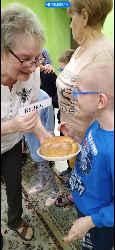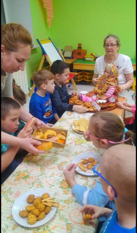Особенный, очень тёплый и душевный праздник - «Праздник хлеба» прошёл для младших воспитанников. Ребята узнали все - все о главном продукте на нашем столе, ведь не зря говорят: «Хлеб - всему голова!» Сначала дети внимательно рассмотрели и изучили «гостя». Увидели, какой он разный: пышная белая булочка, высокий черный «кирпичик», большой круглый праздничный каравай! А какой аппетитный запах идёт от свежего хлеба! Белый хлеб- нежный и мягкий, черный- с легкой кислинкой и особым ароматом, но оба - очень вкусные! А потом, каждый получил кусочек настоящего теста и стал пекарем. Кто - то лепил круглый бублик, кто- то- длинную косичку или квадратный кирпичик, а кто- то - печенье или рогалик. И какой же праздник без угощения? Для кукол было устроение чаепитие с баранками, печеньем и рогаликами.