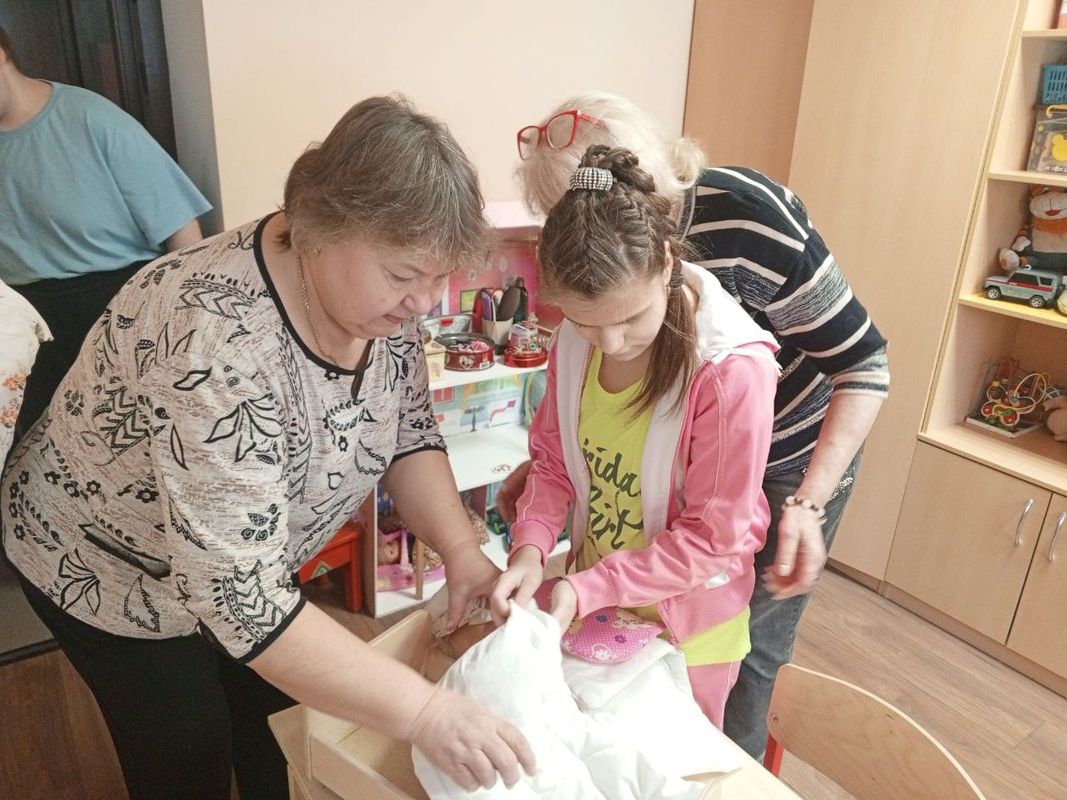 Сегодня обучающиеся швейной мастерской отправились в гости в детское отделение. Наши ребята сшили комплекты постельного белья для кукольных кроваток. Казалось бы, задача простая, но она требует предварительных расчётов, подбора тканей, четкой последовательности действий и аккуратности при выполнении задуманного. Не менее важным является тот факт, что обучающиеся, повышая свой уровень швейных умений, видят, что их изделия ценятся, используются по назначению и приносят радость! Очень трогательно было наблюдать выпускников детского отделения, которые вернулись в родные стены, чтобы увидеть счастливые улыбки их последователей и подарить им частичку своего труда!