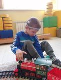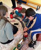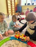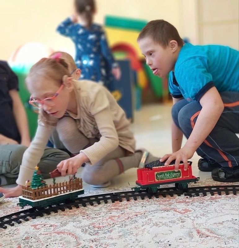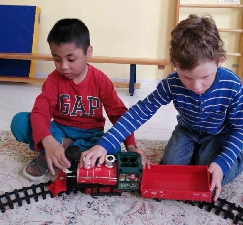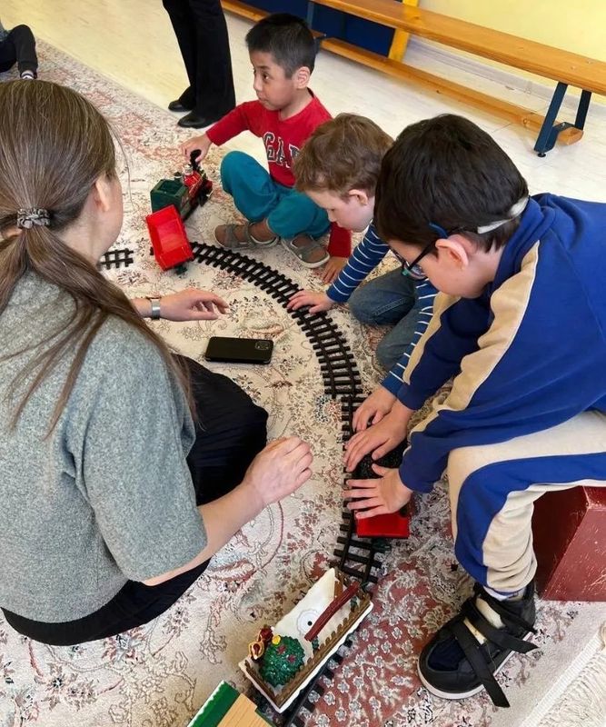Настоящая магия началась, когда все услышали, как он гудит — громко и протяжно! А потом началась самая интересная игра! Дети сами построили железную дорогу и запустили по ней наш паровозик.