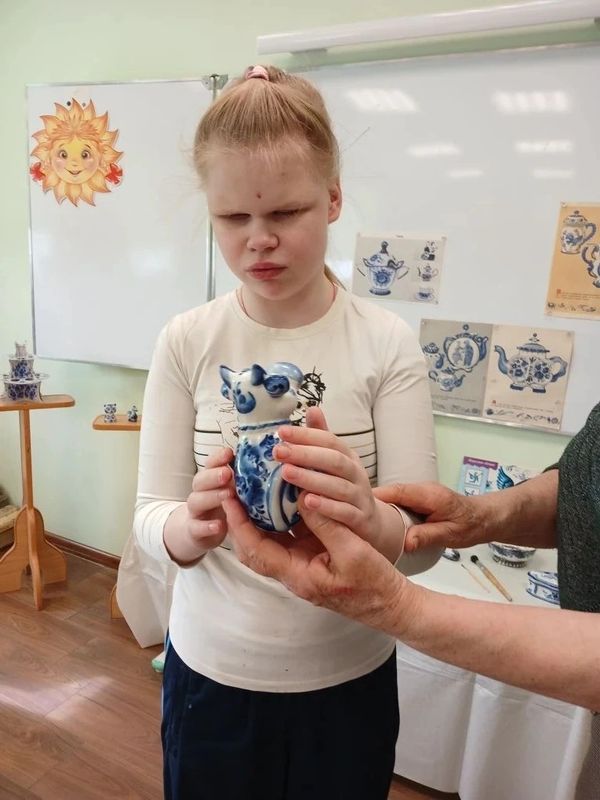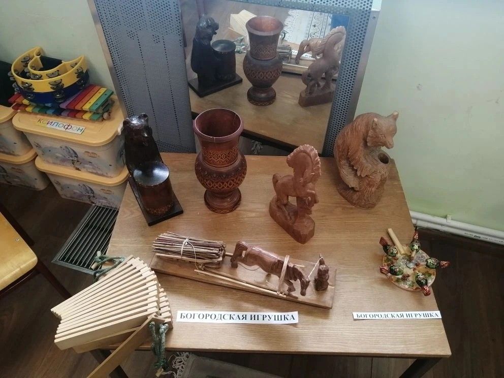 Мероприятие - выставка, посвящённая народным промыслам (богородская игрушка, Хохлома, Гжель) для воспитанников Семейного центра, сочетает познавательные, коррекционные и социально- адаптационные аспекты. На мероприятиях использовались подлинные изделия народных промыслов, словесные рассказы о промыслах, иллюстрации, работа с деревянными заготовками. Через практические занятия: роспись шаблонов, лепка, воспитанники развивали мелкую моторику. Выставка вызвает интерес и развивает познавательные способности.