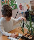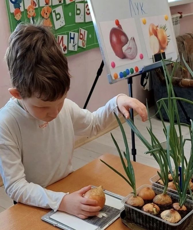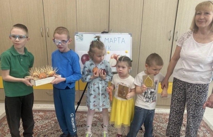 Затем учащиеся изготовили поделки из лука, используя природный материал, различные виды круп, пластилин, зубочистки. Так, например, получились весёлые ёжики.