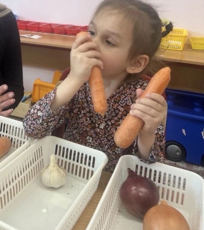 Ребята сортировали овощи и определяли отличительные признаки лука, моркови, чеснока. И даже попробовали их на вкус.