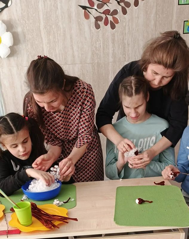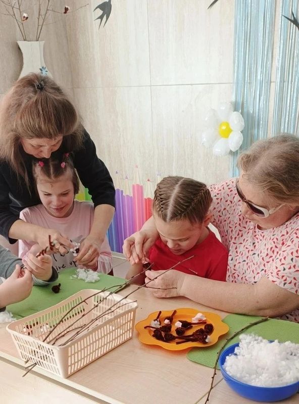 Сегодня в нашей мастерской царила атмосфера светлого праздника и весеннего ожидания. Дети создавали пушистые веточки вербы!