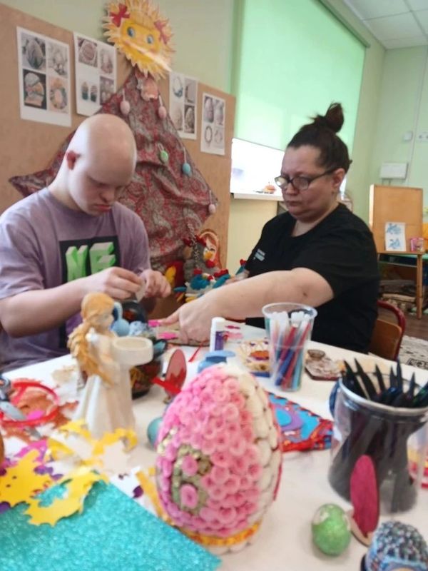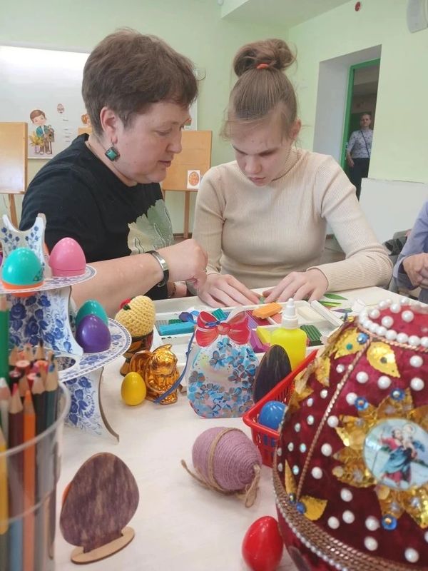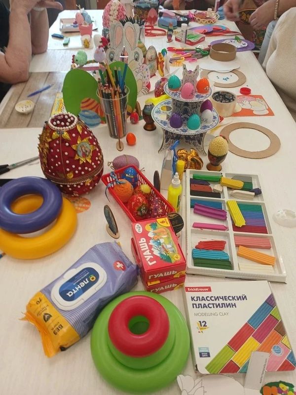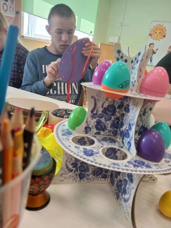 В Семейном центре начала свою работу мастерская "Пасхальные чудеса своими руками" по подготовке к Пасхе. Первый день изготовления пасхальных сувениров начался с лепки и украшения яиц, изготовления корзинок, венков, пасхальных открыток. Цель работы мастерской в течение всей недели будет направлена на знакомство с традициями праздника, развитие творческих навыков и воспитание уважения к культурному наследию. Воспитанники работали с клеем, красками, фетром, фоамираном, ножницами. Работа в мастерской способствовала развитию коммуникации и чувства гордости за свою работу.
