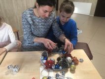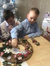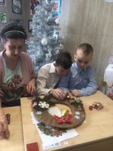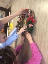 В канун Рождества в ГБСУСО МО "Семейный центр имени А. И. Мещерякова" прошел мастер-класс по изготовлению Рождественского венка. Ребята учились практическим приемам изготовления венка из картона. Развивали художественный вкус, творческое воображение в процессе подбора элементов для декорирования. Красочные венки украсили холлы центра.
